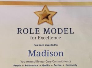 The manager wrote, “Morgan deserves kudos for her work with a patient who was refusing to eat. She was fabulous. On Friday, the patient was only eating vanilla pudding. Morgan worked with him on Saturday and Sunday, and he completed his entire Sunday dinner and ate all of his breakfast on Monday morning, including supplements. He was a different man that morning! We want to let Morgan know that we appreciate her outstanding care!”